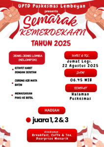 Dalam memeriahkan Hari Kemerdekaan ke-80 Republik Indonesia Tahun 2025, Puskesmas Lembeyan mengadakan serangkaian lomba yang diikuti oleh karyawan-karyawati dengan penuh antusias. Acara dilaksanakan pada hari Jumat tanggal 22 Agusus 2025 dimulai pukul 06.45. Semangat kekompakan, gotong-royong tercermin dalam kegiatan lomba ini adalah salah satu wujud rasa cinta tanah air.